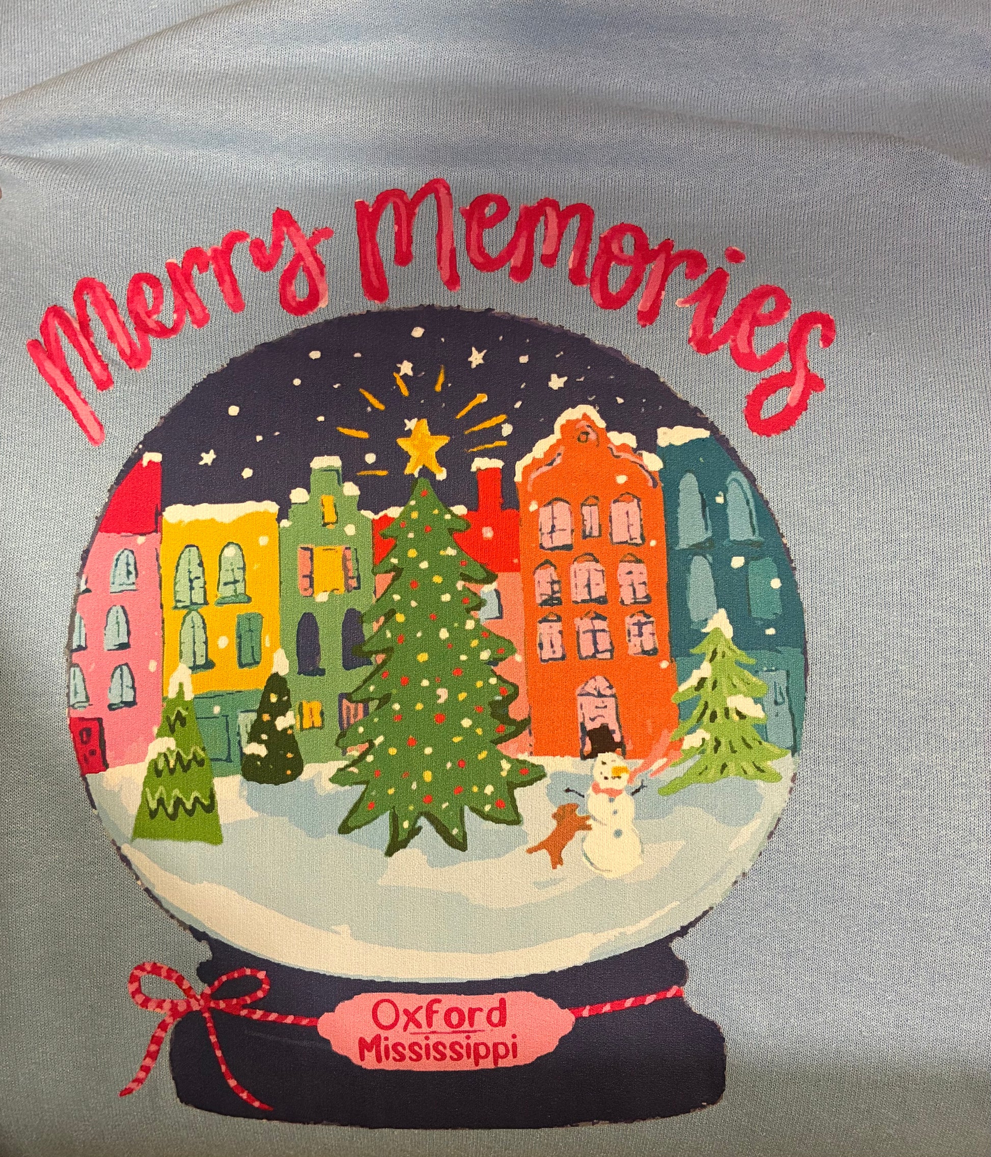 EMMALEE SNOWGLOBE MERRY MEMORIES ON LIGHT BLUE SWEATSHIRT