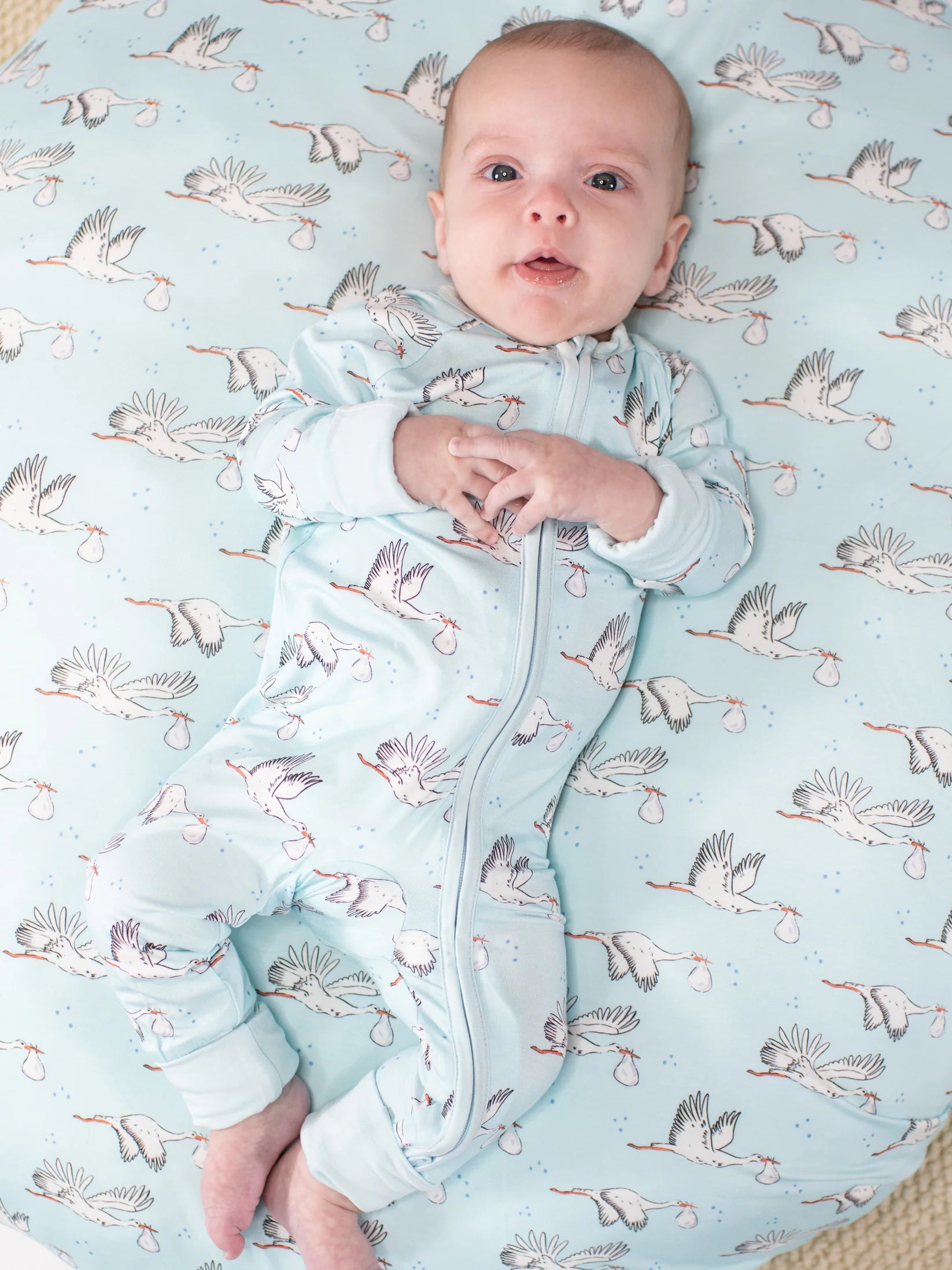 Our Zip Pajamas feature a two way zipper for easy diaper changes, convertible feet and scratch mitts for sizes 0-3 months and 3-6 months.